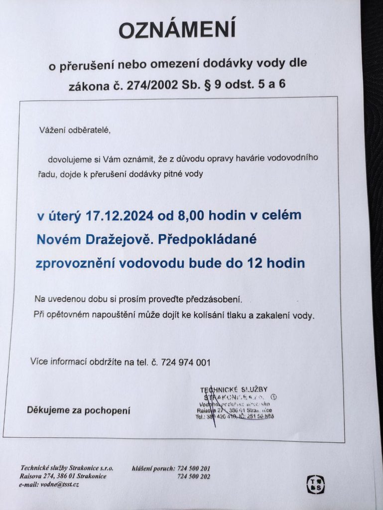 Přerušení dodávky pitné vody Autor příspěvkuZdenek Příspěvek byl publikován13. 12. 2024 Rubriky příspěvkuNezařazené Komentáře k příspěvkuŽádný komentář Mohlo by se Vám také líbit ZÁPIS Z 1. VEŘEJNÉHO ZASEDÁNÍ OSADNÍHO VÝBORU NOVÉHO DRAŽEJOVA A VIRTU 23. 10. 2024 Napsali o nás… 3. 12. 2024 Schůze osadního výboru pro veřejnost 26. 9. 2024 Napsat komentář Zrušit odpověď na komentářKomentářChcete-li přidat komentář, zadejte své jméno nebo uživatelské jméno Chcete-li přidat komentář, zadejte svou e-mailovou adresu Zadejte adresu URL svého webu (volitelně) Uložit do prohlížeče jméno, e-mail a webovou stránku pro budoucí komentáře. Δ