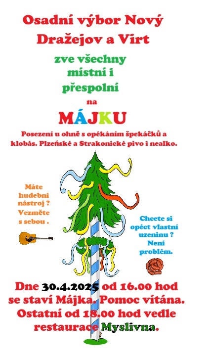 Zveme Vás na MÁJKU dne 30.4.2025 od 16:00 Autor příspěvkuZdenek Příspěvek byl publikován22. 4. 2025 Rubriky příspěvkuSpolečenské akce Komentáře k příspěvkuŽádný komentář Mohlo by se Vám také líbit Dětský den – 1.6.2025 14:00 6. 5. 2025 Čarovný les 2025 31. 7. 2025 Zabijačkové hody 2025 5. 10. 2025 Napsat komentář Zrušit odpověď na komentářKomentářChcete-li přidat komentář, zadejte své jméno nebo uživatelské jméno Chcete-li přidat komentář, zadejte svou e-mailovou adresu Zadejte adresu URL svého webu (volitelně) Uložit do prohlížeče jméno, e-mail a webovou stránku pro budoucí komentáře. Δ